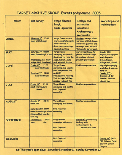 Tarset Archive Group (TAG) was run by volunteers in the community and worked between 2003 and 2023, surveying and recording many different features in Tarset.