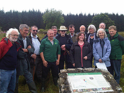 Photograph: TAG with FC staff and also Guy Opperman, Beryl Charlton, Stuart Evans (NNPA) and Mike Ritchie, at Shilla Hill Bastle, prior to the trail opening ceremony in Greenhaugh